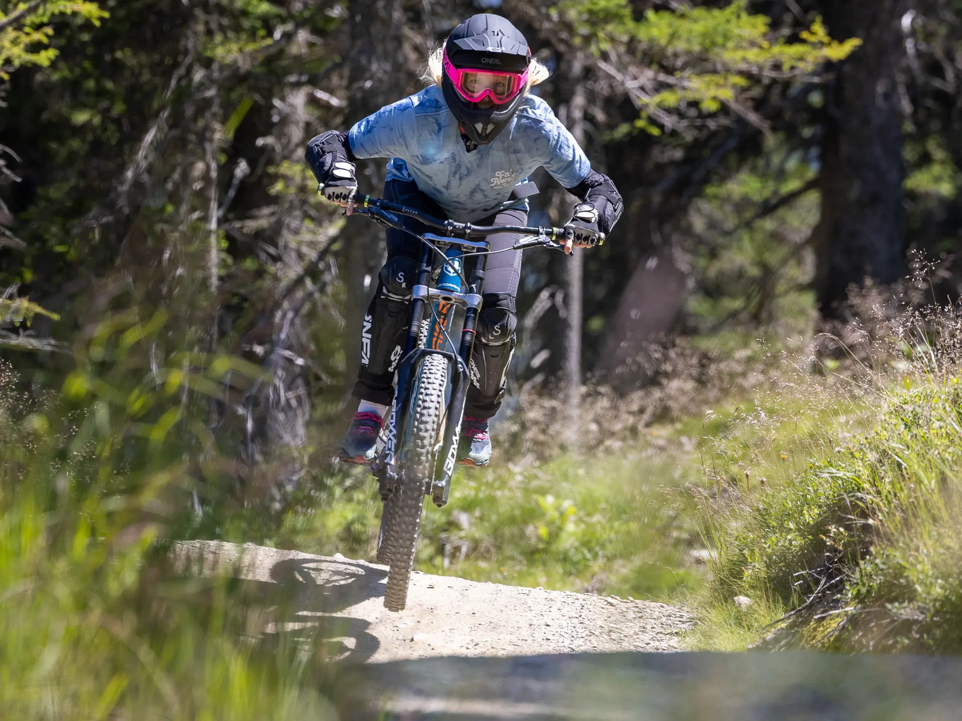 Cycling gloves or similar would be a good thing. You can use regular sports shoes for downhill mountain biking, but some experienced riders use special shoes with a click system that locks you into the pedals. In general, we recommend that you dress in loose-fitting clothing and preferably something that you can layer on and off. There's a world of difference between descending the mountain and sitting in the lift on the way up to your next ride.